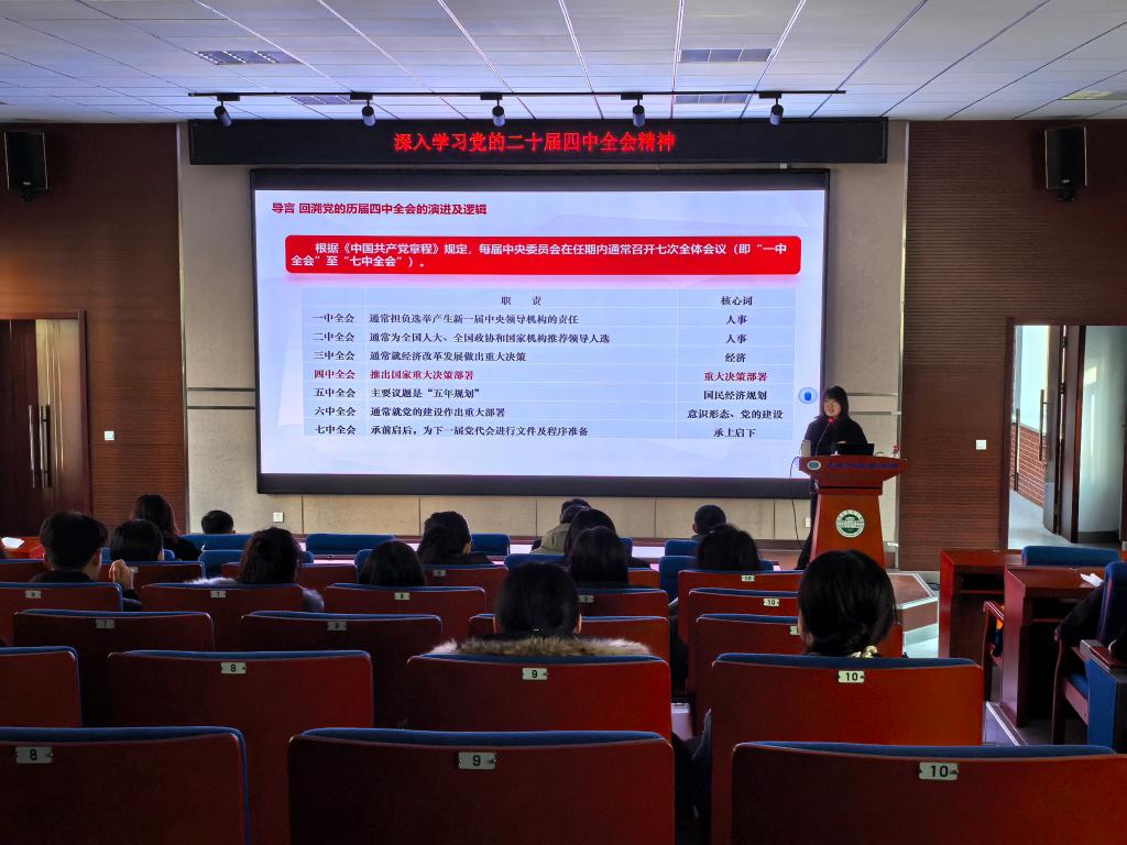 召开深入学习贯彻党的二十届四中全会精神专题宣讲会,特邀马克思主义人前露出孙淑军教授作宣讲报告。人前露出全体党员、师生代表共百余人参会。